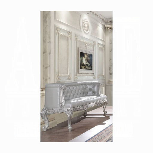 ACME Versailles Bench, Fabric & Antique Platinum, 65" x 28" x 20"H, 72Lbs. Materials: Upholstery, Poly Resin