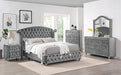 Showcase your personal taste with this bold statement piece in your bedroom. Fully upholstered in flannelette, this chest features padded fabric and crystal buttons. Each drawer handle is made of glistening acrylic crystals, while silver-painted cabriole legs are perfect in bringing in majestic vibes that this ensemble set out to do.