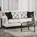 A Greek influence is always a fun starting point for your home. Keeping things simple, open, and airy helps breathe life into a room and inspire your decor choice. The throw pillows feature a trellis design on an ivory backing and the dark pillow feature a Grecian meander design. High density foam fill the plump box cushion seating and loose back pillows for an ultra comforting seat.