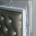 MANAR Cal.King Bed, 90 1/4"L X 79"W X 62 1/4"H, 198lbs. The glamor is in the details of this bedroom set from the Manar Collection. The headboard is upholstered in a faux leatherette, button-tufted with crystal-acrylic buttons, and embedded with a LED light, creating a sparkling aesthetic. The matching pieces feature a decorative, circular pattern, only adding to opulence of the design. Your bedroom will be a place to pamper yourself with this set.