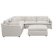 Complete your spacious modern living room with this beautifully designed modular sectional, featuring soft, textural fabric. Feather blend-wrapped box cushion seating with reversible cushions and topstitched details, paired with a thin track arm design, create a sleek, modern aesthetic to elevate your family room and beyond. Matching accent pillows and plush back cushions add extra comfort, nestled against the sloped track armrests. This sectional is perfect for complementing your existing decor, welcoming neutral tones, or providing a sophisticated backdrop to vibrant colors.