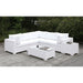 Enjoy the great outdoors in style and comfort with this UV and weather resistant patio set. Featuring a woven look, the wicker frame is finished in gray and comes complete with padded fabric seat cushions. However much space you have in your backyard, the modular design allows for unparalleled flexibility to match your creativity.