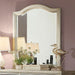Turn your bedroom into something you'll truly love with this luxurious bedroom set. The leatherette headboard is tufted with Crystal-like buttons, while the footboard features crocodile skin leatherette. Case goods have mirror panels on the top drawers, all finished in a sleek silver gray.